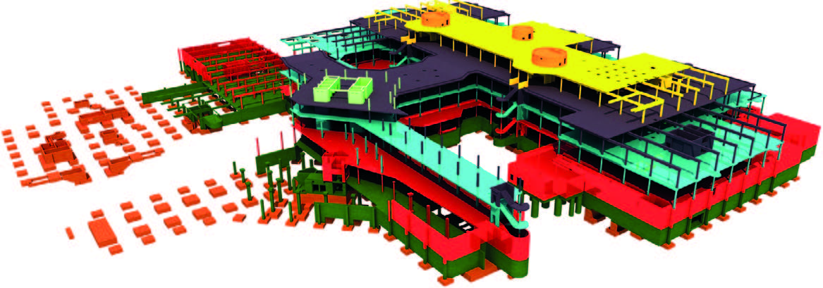 Abbildung 3: Farbliche Absetzung einzelner Nutzungsbereiche im Bestandsmodell des Tragwerks