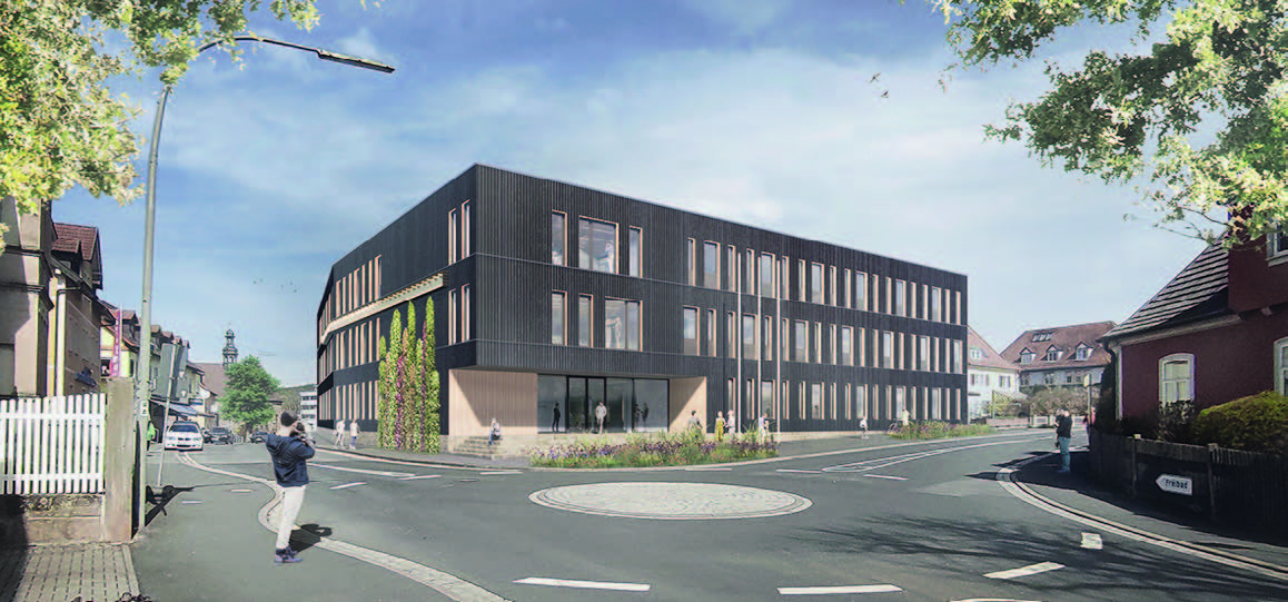 In Ebern entsteht ein neues Verwaltungsgebäude für die Landesbaudirektion Bayern. Der Neubau positioniert sich in prominenter Lage am Rande der Altstadt und bildet eine Schnittstelle zwischen kleinteiliger Wohnbebauung, Gewerbebauten und der Altstadt.