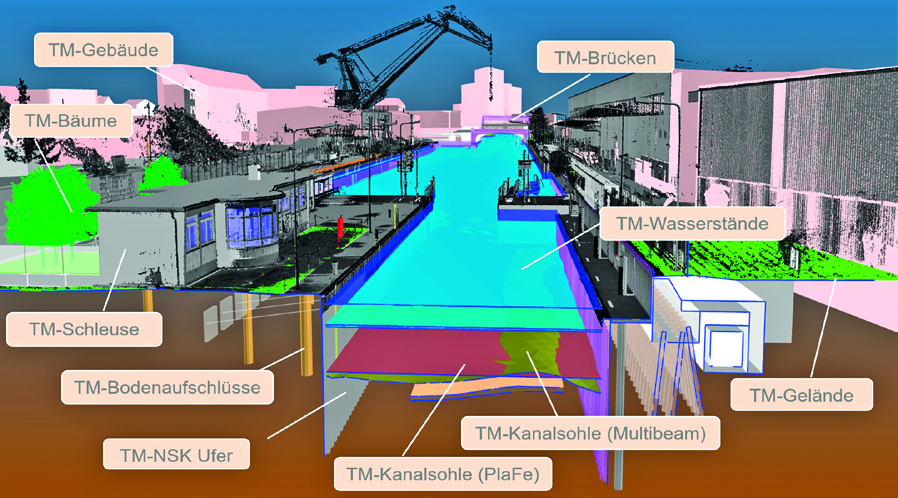 Neubau-, Sanierungs-, Erweiterungs- und Instandsetzungsplanungen von Verkehrswasserbauwerken setzen sich nahezu immer mit zum Teil sehr alter Bauwerkssubstanz auseinander. Im Kontext von Digitalisierung und BIM sind Bestandsmodelle ein wichtiger Startpunkt. Ein Bauwerksinformationsmodell, das oftmals in ganzheitlicher Abschnittsbetrachtung von Wasserstraßen mit Teilmodellen abzubilden ist, dient als Basis der weiteren Instandhaltungs- und Neubauplanung. Der Beitrag gibt anhand eines Praxisbeispiels einen Einblick in Digitalisierungsansätze im Konstruktiven Verkehrswasserbau.