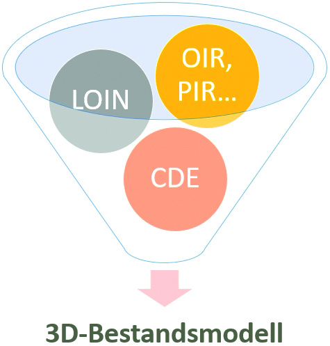 Wie auch bei der Neuplanung gilt es zudem, die Ziele der Bestandsmodellierung abzustecken. Es ist es sehr wichtig, dass sich Auftraggeber und Ersteller des Bestandsmodells zu Beginn gemeinsam um die Informationsanforderungen zur Erreichung der Projektziele Gedanken machen und eine sinnvolle Modellstruktur, -informationstiefe und notwendige Attribute definieren. Hieraus resultiert ein projektspezifisches Anforderungsmanagement zum Informationsaustausch (EIR) auf Basis der BIM-Anwendungsfälle. Darüber hinaus muss die konsistente und widerspruchsfreie Verfügbarmachung aller Daten in einem Common Data Environment (CDE) vorab geklärt werden (Abbildung 1).