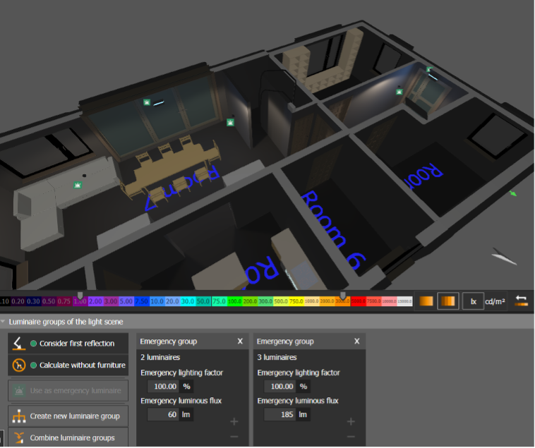 Die Integration gewährleistet, dass das Design und die Platzierung der Notbeleuchtung für eine optimale Wirksamkeit bei der Evakuierung der Menschen optimiert werden. Die Integration der Notbeleuchtung in Gebäudemodelle ermöglicht es den Planern, die Abdeckung und Effektivität des Beleuchtungssystems zu analysieren. Simulationswerkzeuge sind in der Lage, IFC-Modelle zu importieren (wie in Abbildung 3 dargestellt), um Beleuchtungsszenarien zu simulieren und zu evaluieren, ob die Notbeleuchtung die gesetzlichen Anforderungen erfüllt und eine angemessene Beleuchtung für einen sicheren Ausgang gewährleistet.